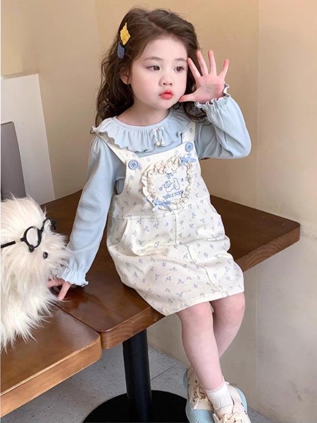 - [수입] 블루잔꽃멜빵원피스세트 (바로배송)